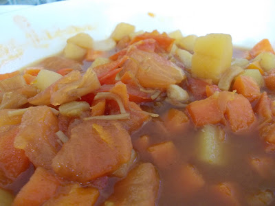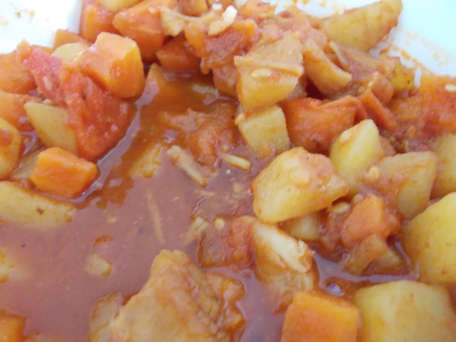 1)Deep fry the potato, carrots, shallots and garlic, in olive oil for 5 mins.